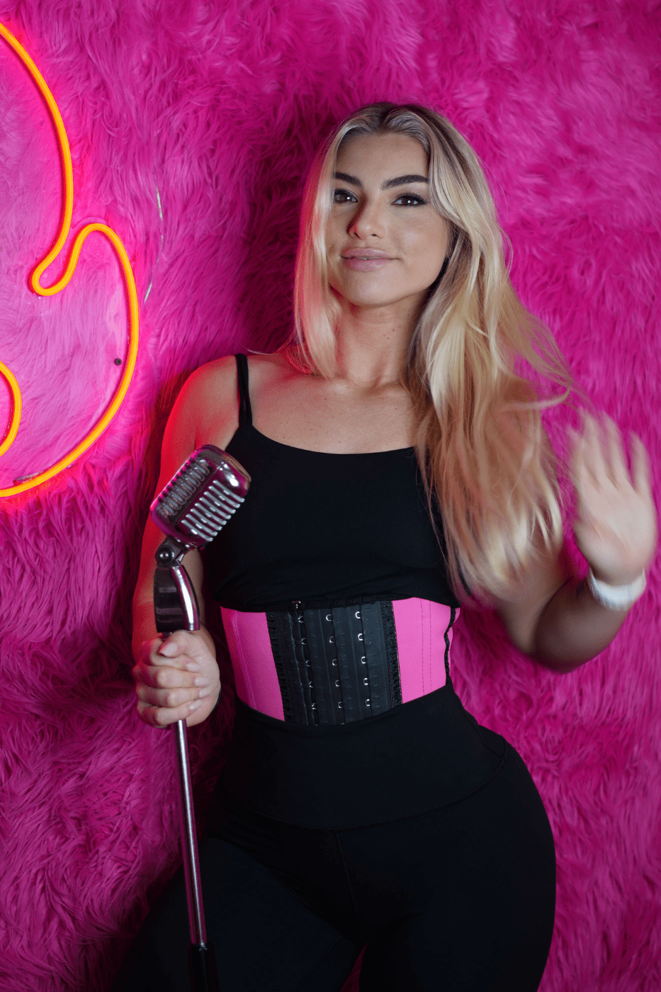 The goal is to move through the hook enclosures and make progress inward. For additional compression, you can even layer the 5-inch Mini Squeeze over the top to enhance the focus on the waistline.